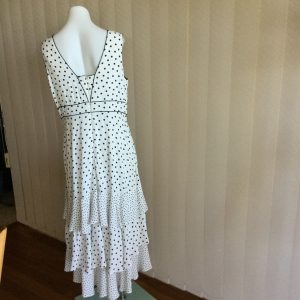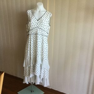 Very wearable style, with sleeveless top and flattering flared skirt.